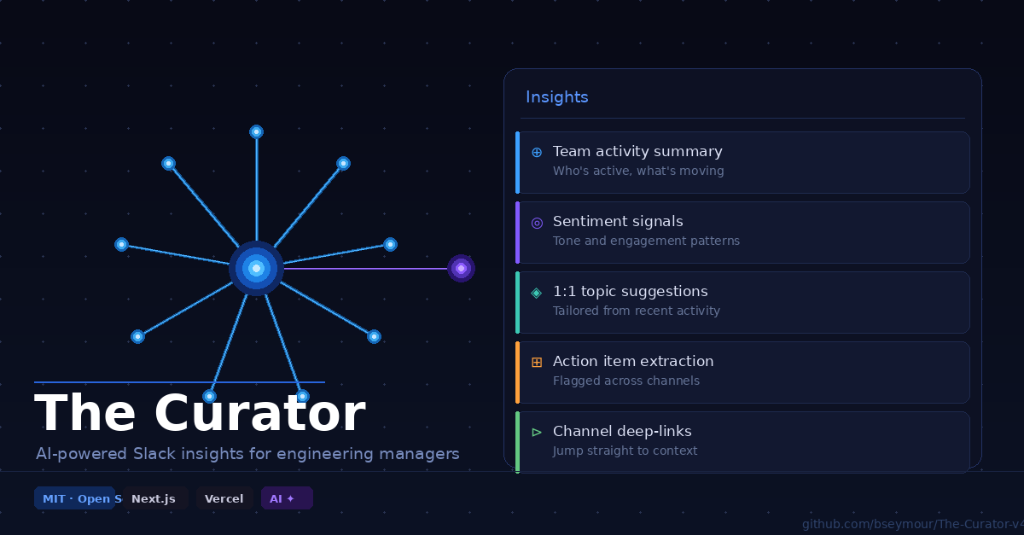 AI-powered Slack insights for engineering managers. Get summaries of team activity, sentiment analysis, 1:1 topic suggestions, action item extraction, and communication pattern detection to help you stay connected with your team.